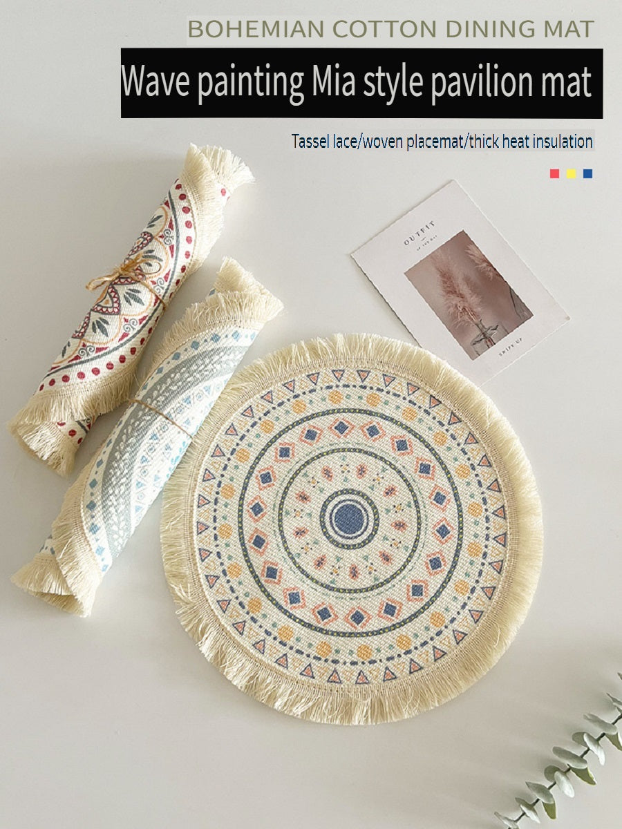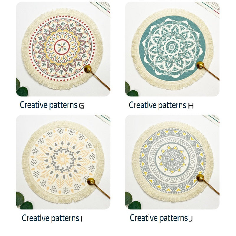BGS hand-woven Bohemian cotton placemat with tassels, Nordic fabric woven round cushion,diameter 16/34 cm (6.3/13.4 inches)