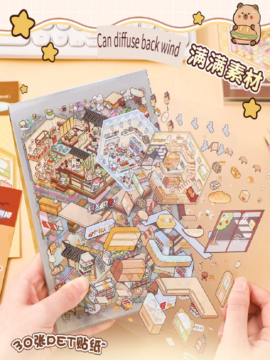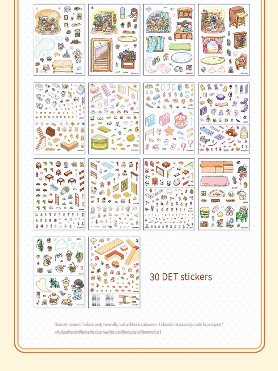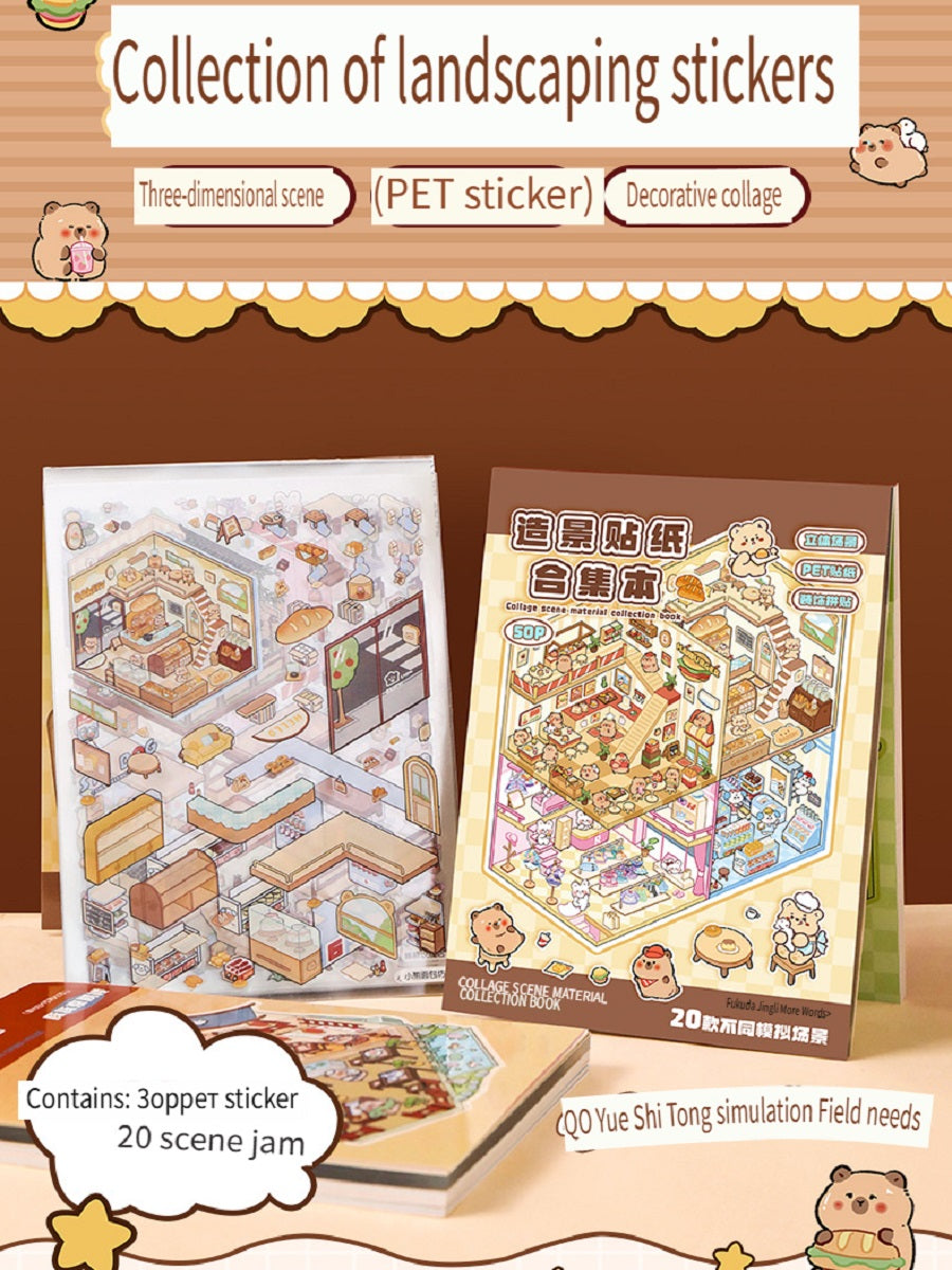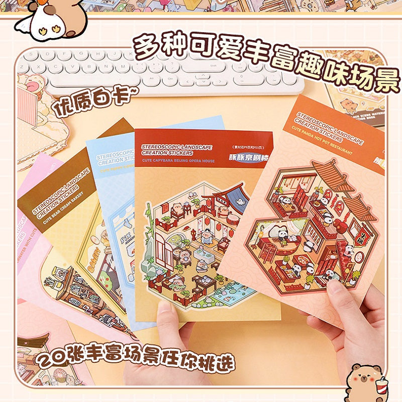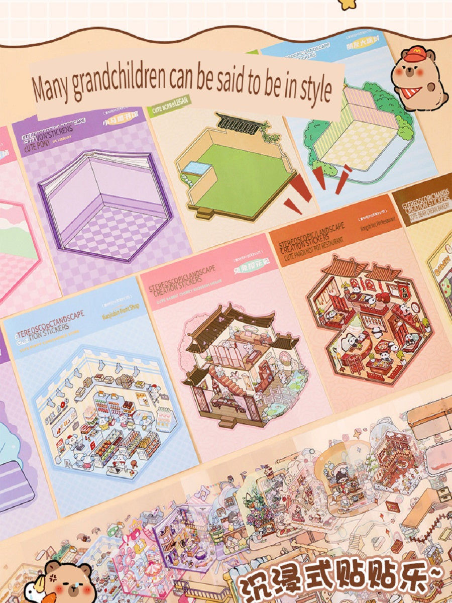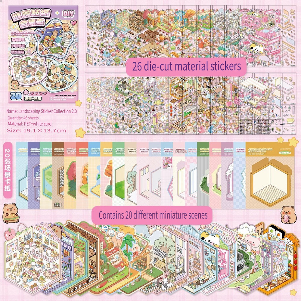 ERANC Collection of 3D three-dimensional hut miniature scene landscaping stickers, children's diy hand account educational toy stickers, 20 scenes