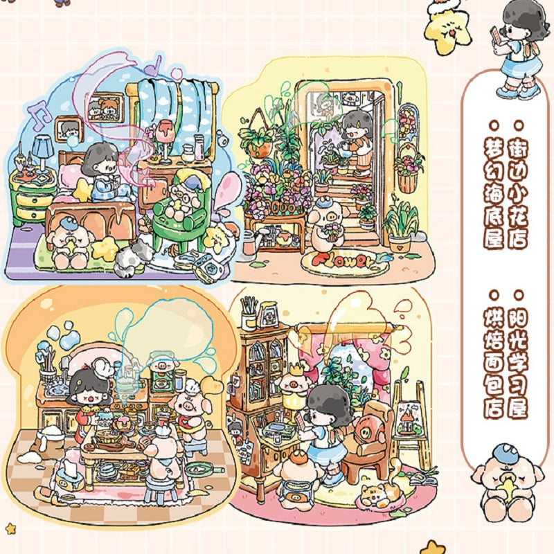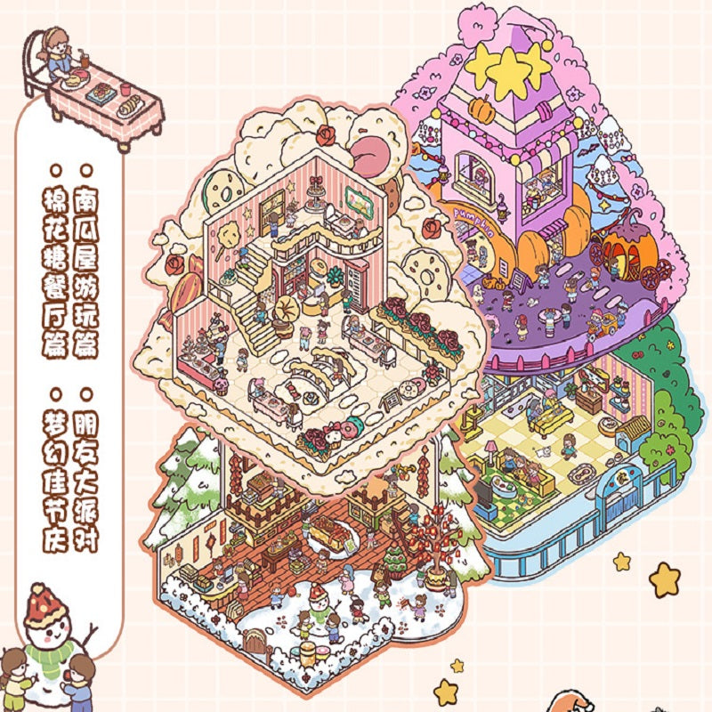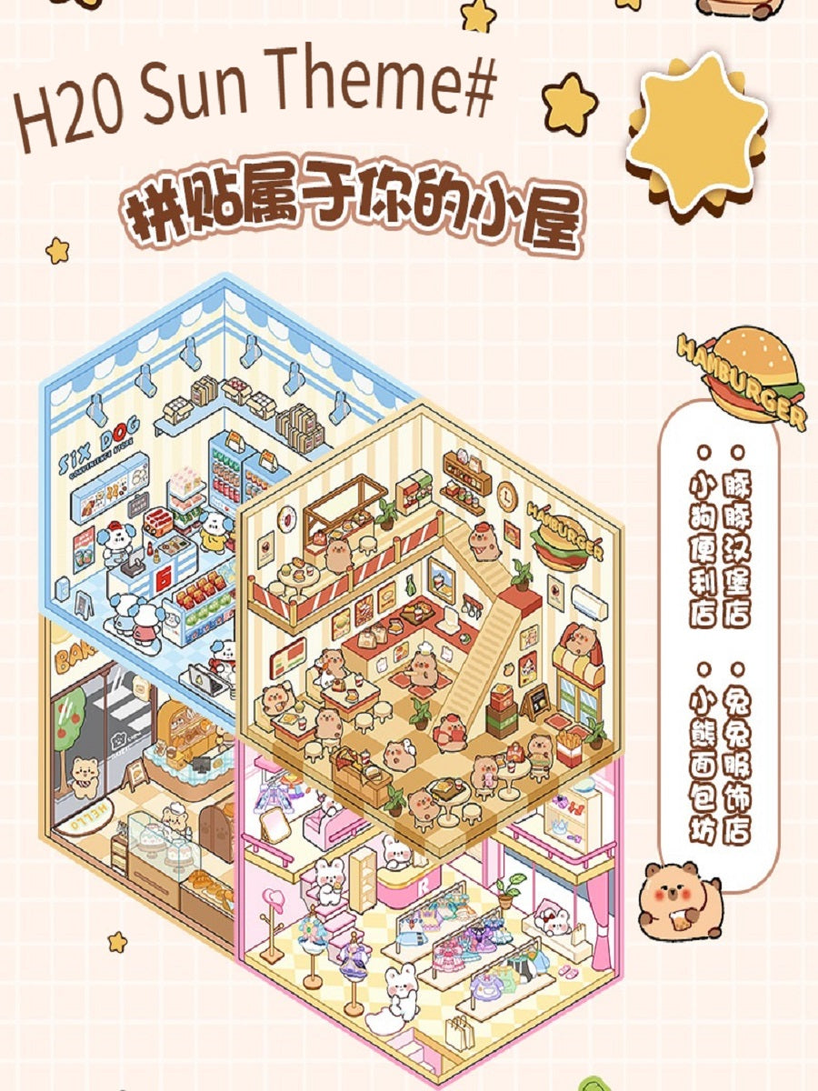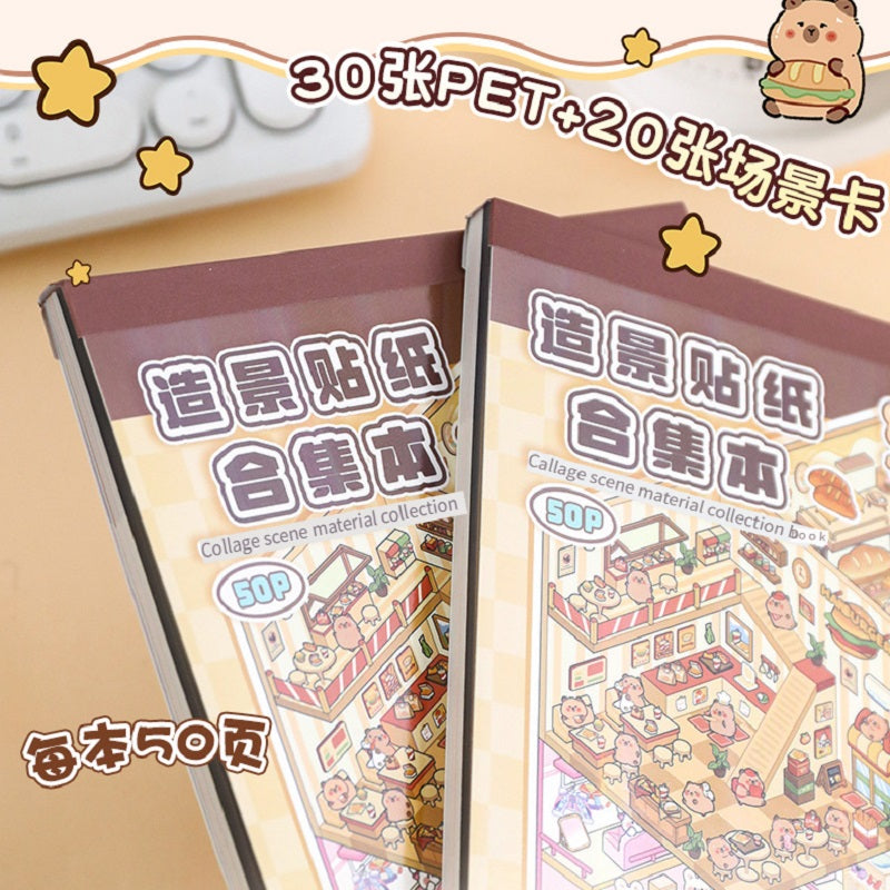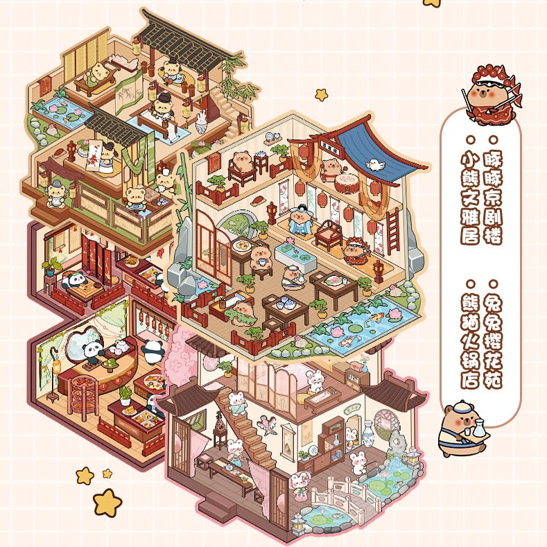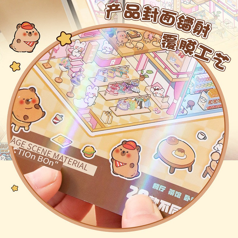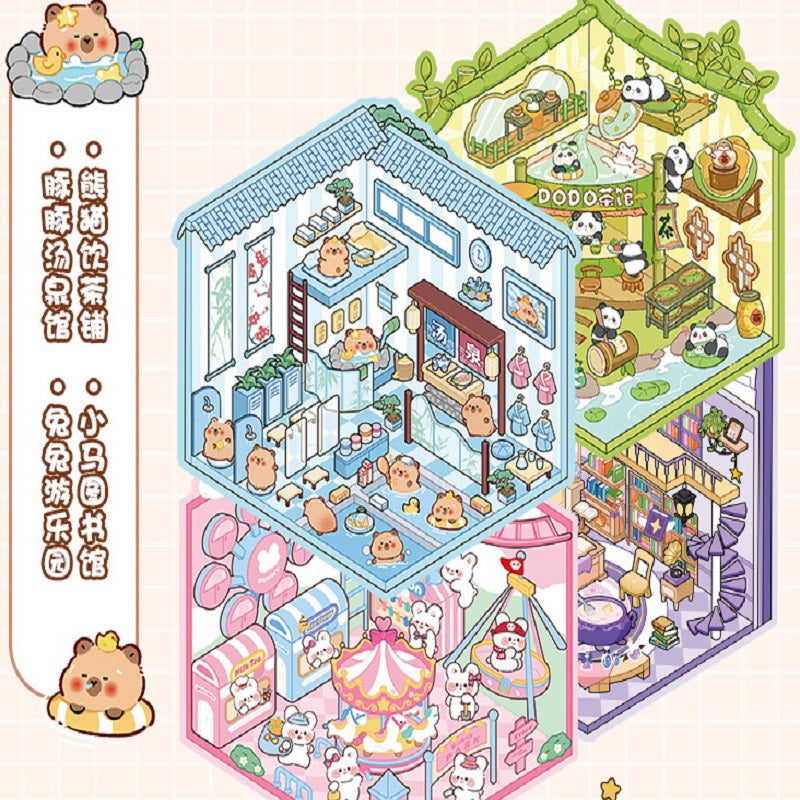 ERANC Collection of 3D three-dimensional hut miniature scene landscaping stickers, children's diy hand account educational toy stickers, 20 scenes