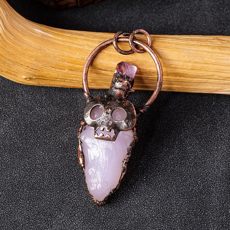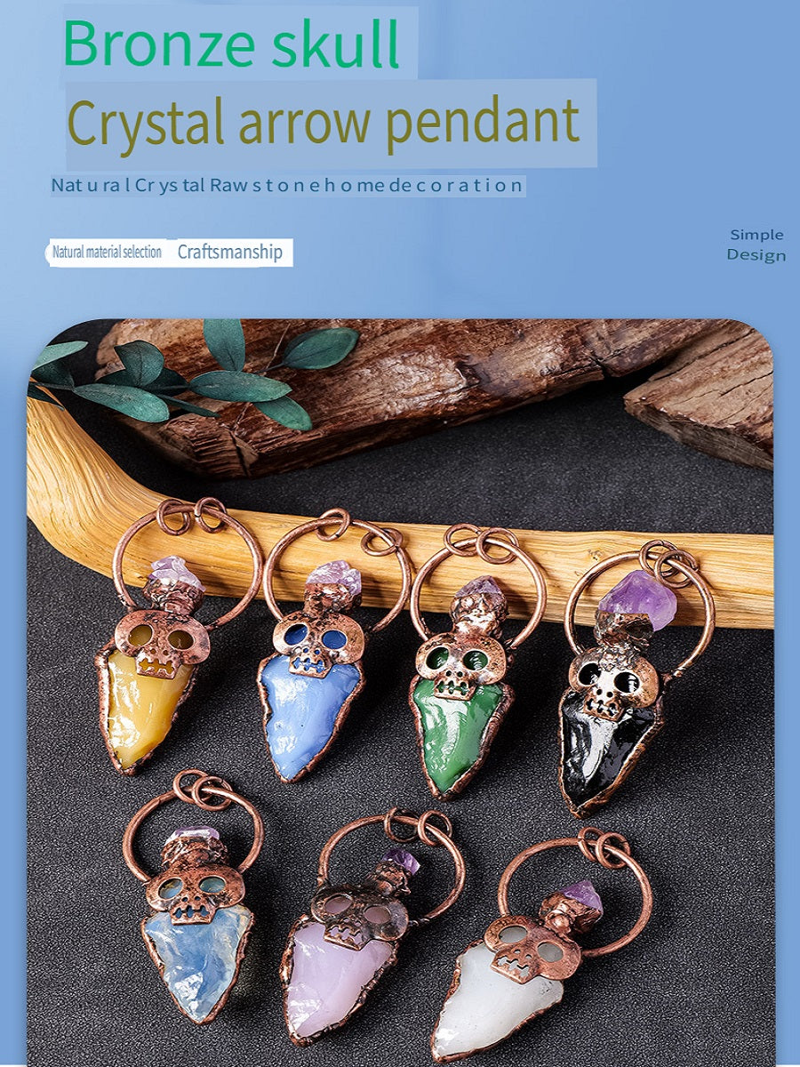 RYS European and American retro copper skull crystal arrow pendant necklace, punk style
