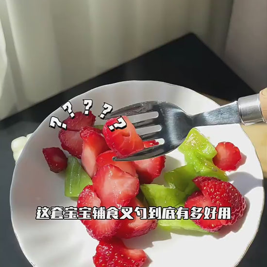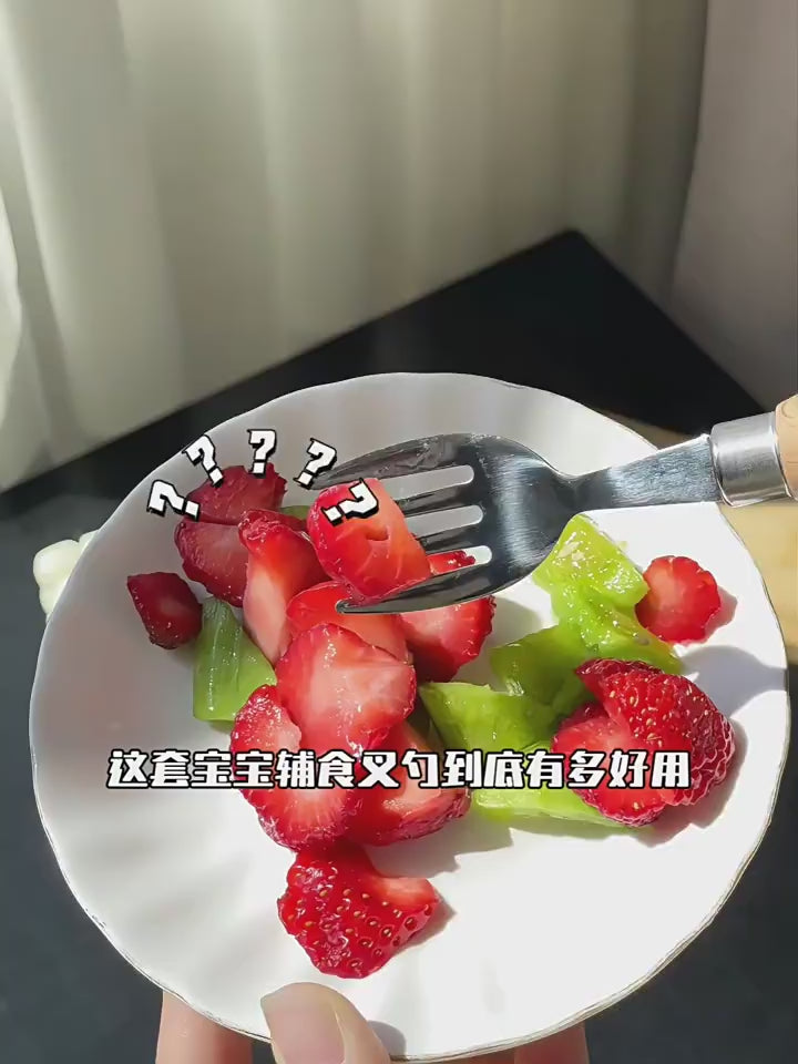 HOMGED 304 stainless steel beech handle children's spoon and fork set, original steel color and gold,can stand upright