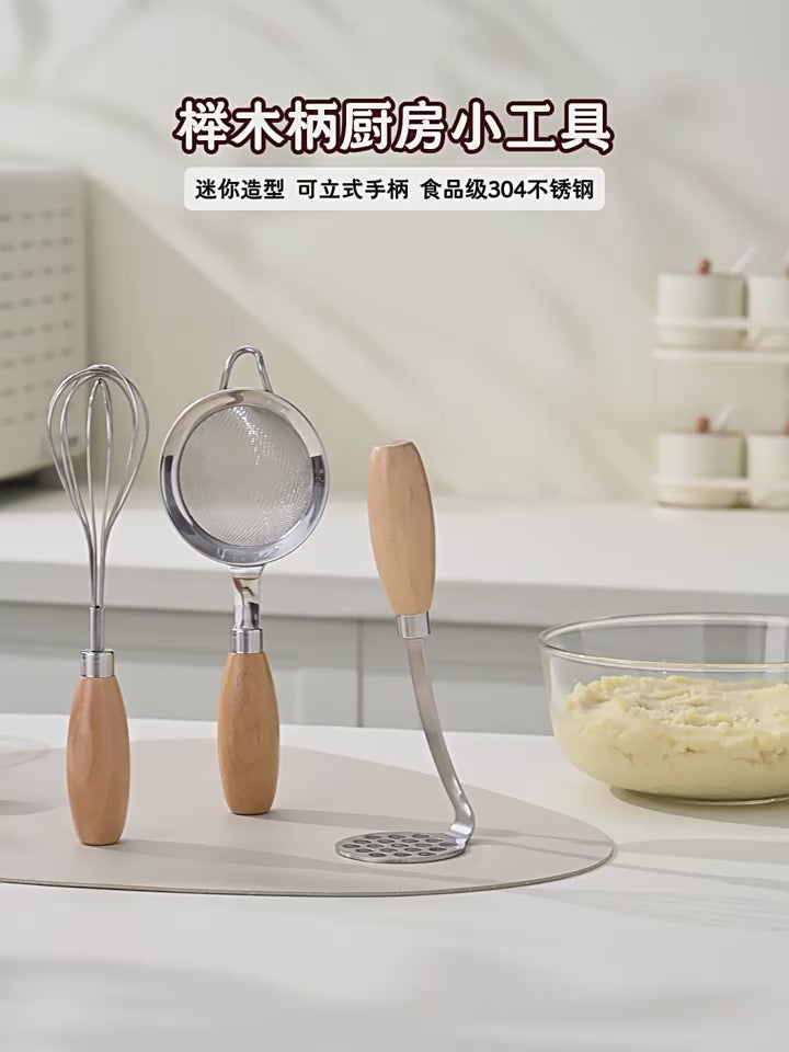 CX-304 beech handle whisk, CX-304 beech handle potato press, CX-304 beech handle net colander