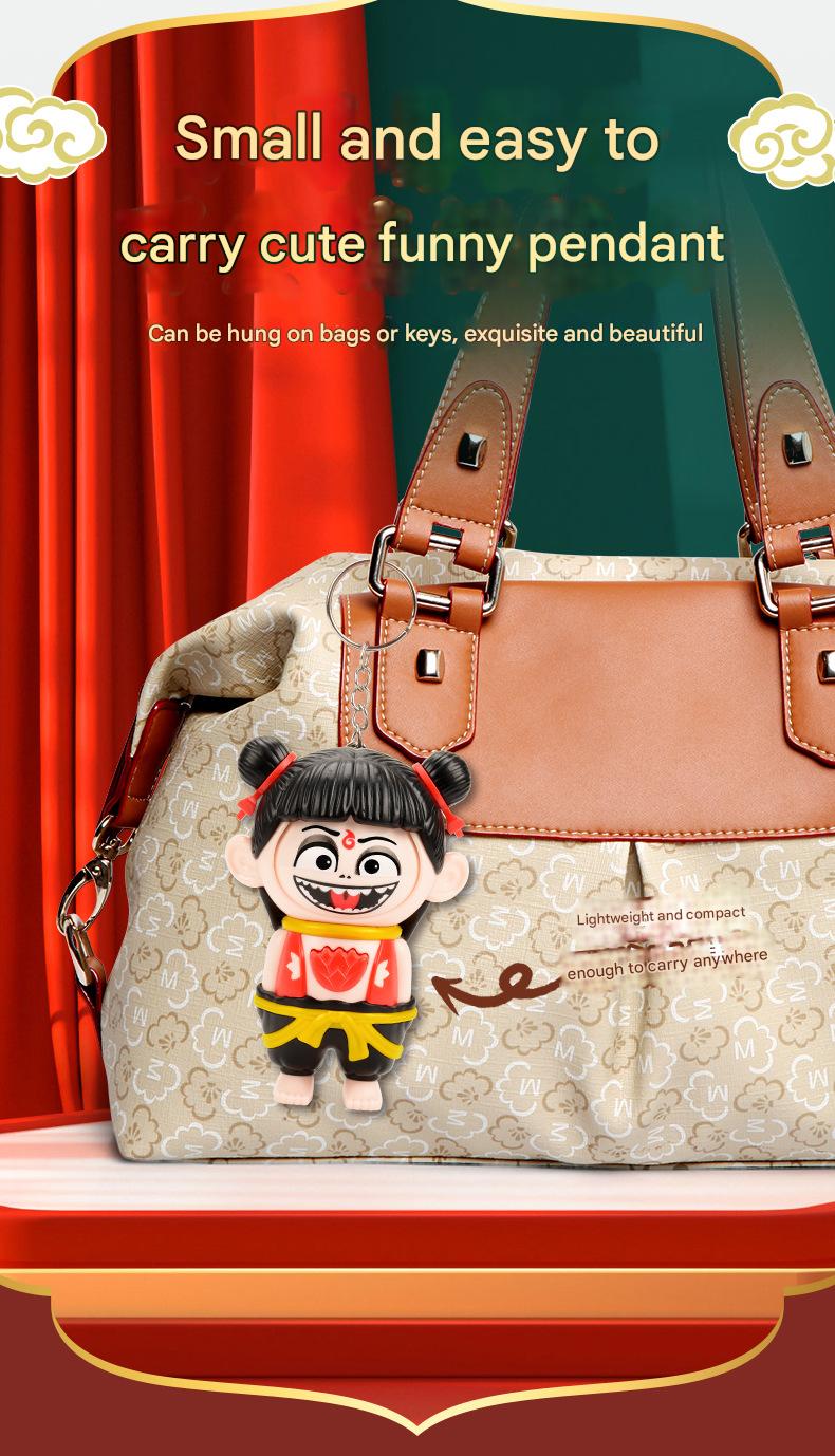 KKT Nezha Face Changer Doll Keychain Press Button Face Change Creative Toy