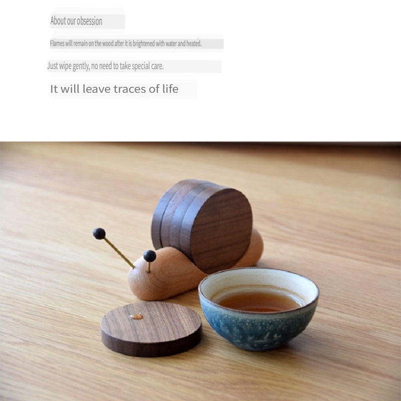 MYZD Black walnut/beech wood cartoon snail creative tea coasters, 5 pieces