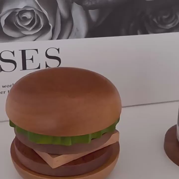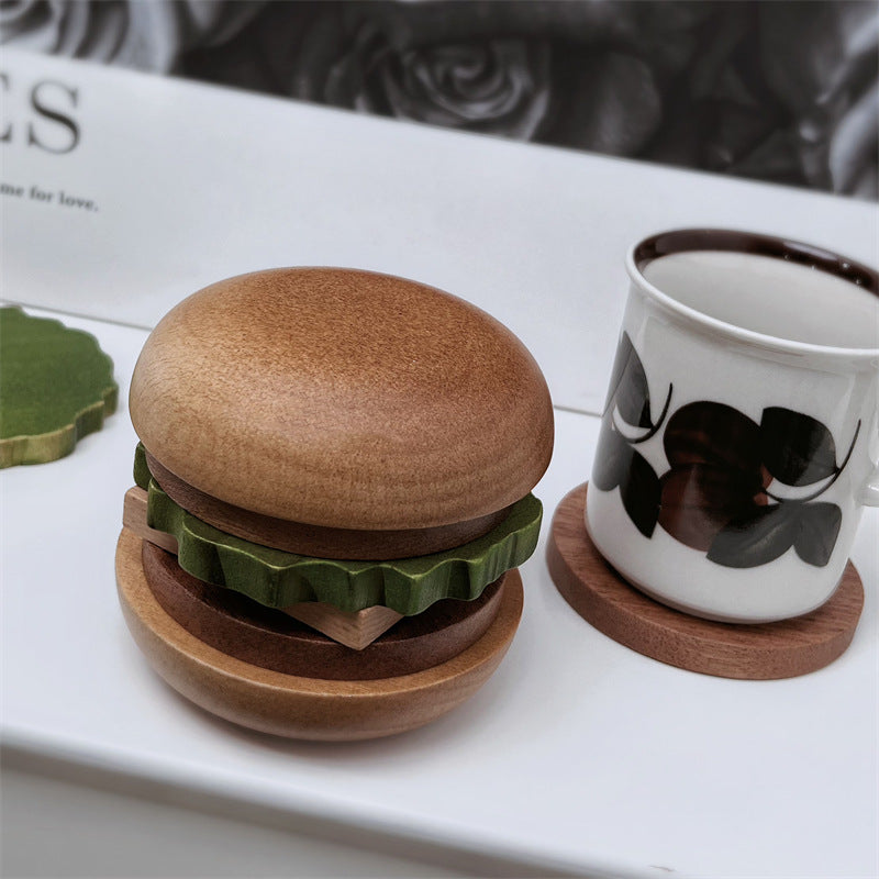 MYZD Creative and fun solid wood hamburger coaster, multi-function home furnishing decorate
