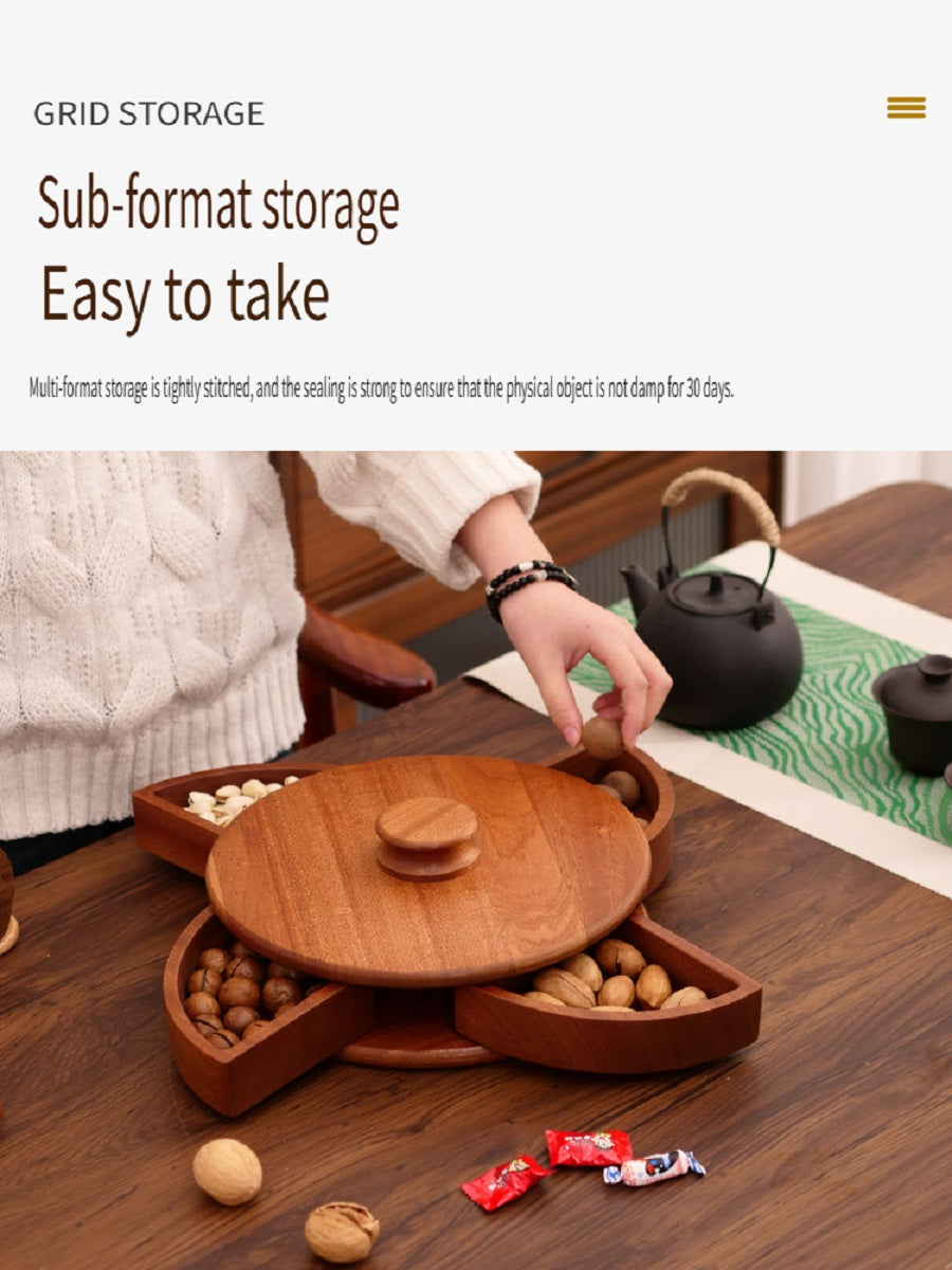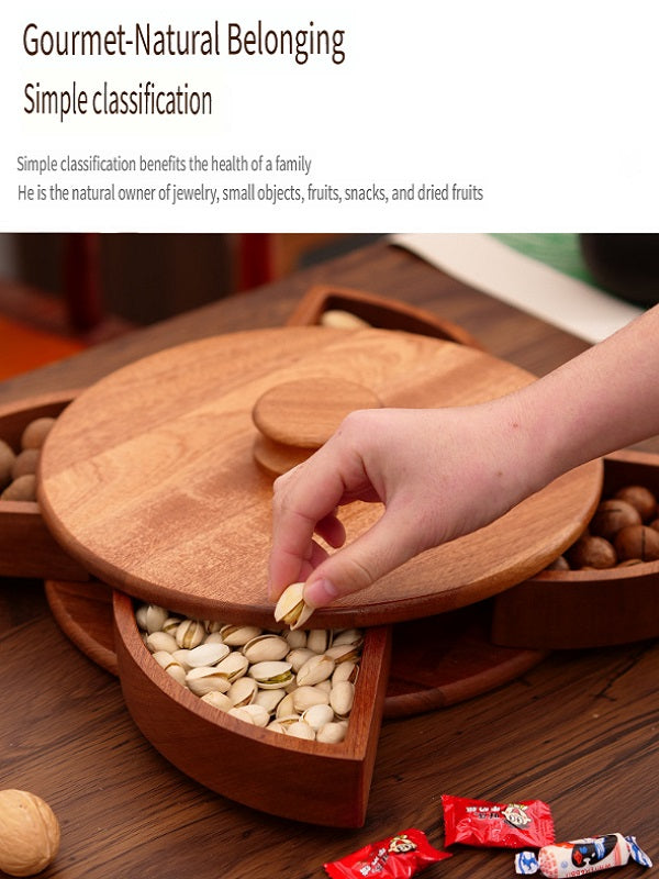 MYZD Light luxury ebony solid wood rotating mechanism box, snack storage box, 4-grid rotating dried fruit box