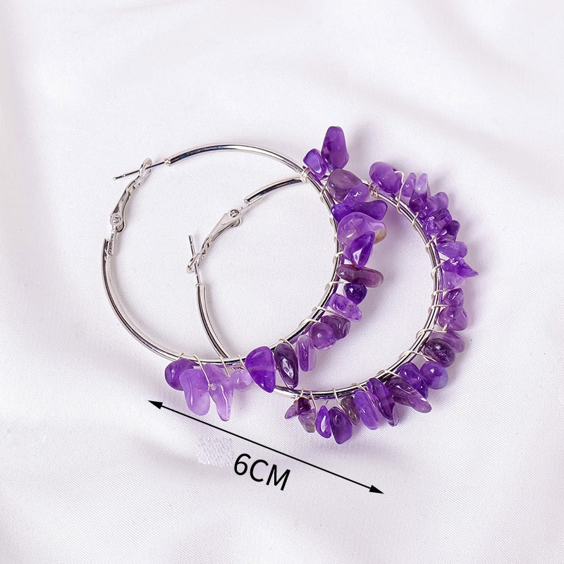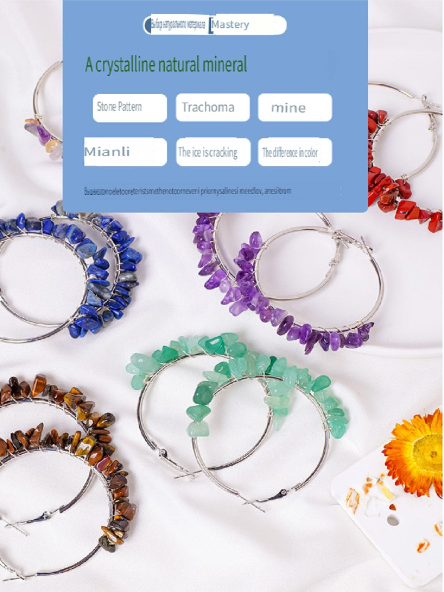 RYS Natural crystal gravel earrings, hand-wound, fashionable and versatile round earrings