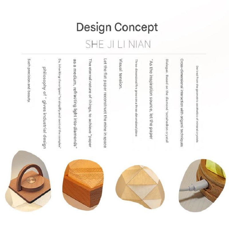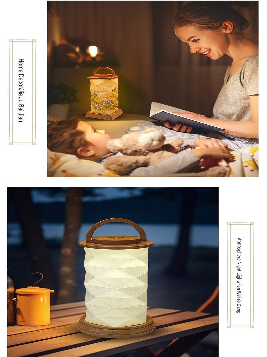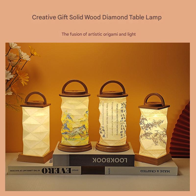 OBB Creative solid wood paper art atmosphere desk lamp, cultural and creative gift lamp, ornaments, touch dimming LED rechargeable night light