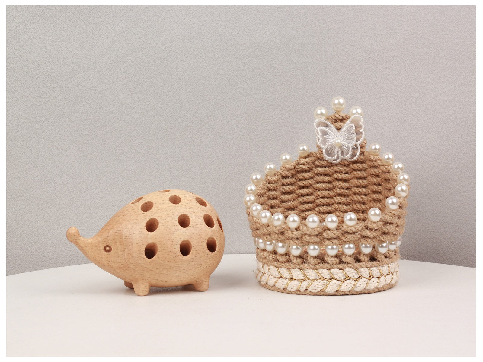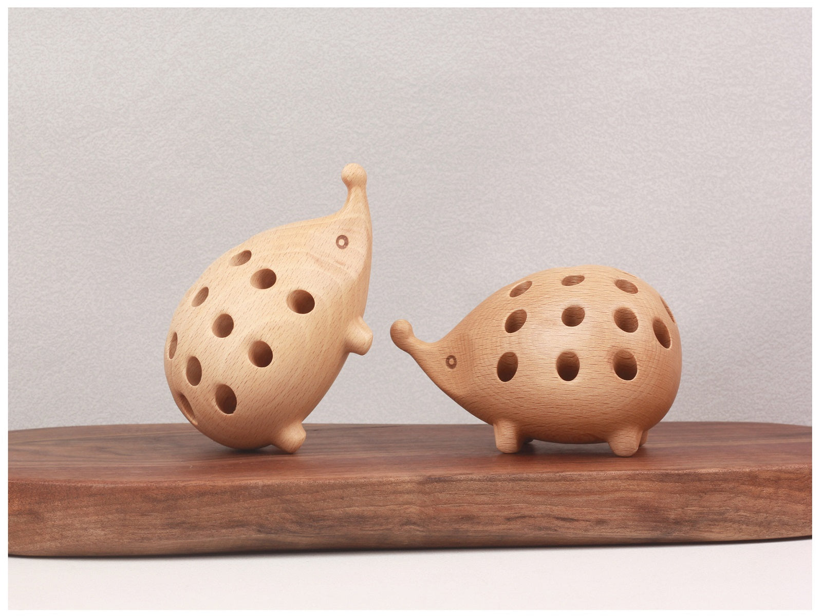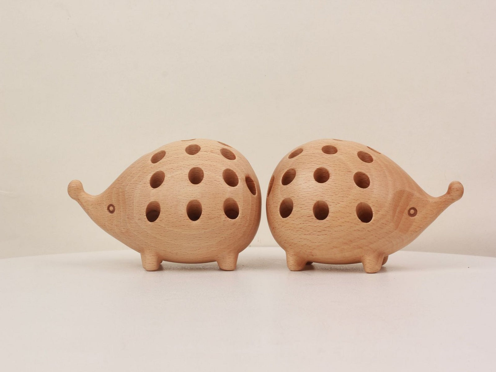 VKXK Nordic style beech/sapele hedgehog pen holder, solid wood handicraft ornaments