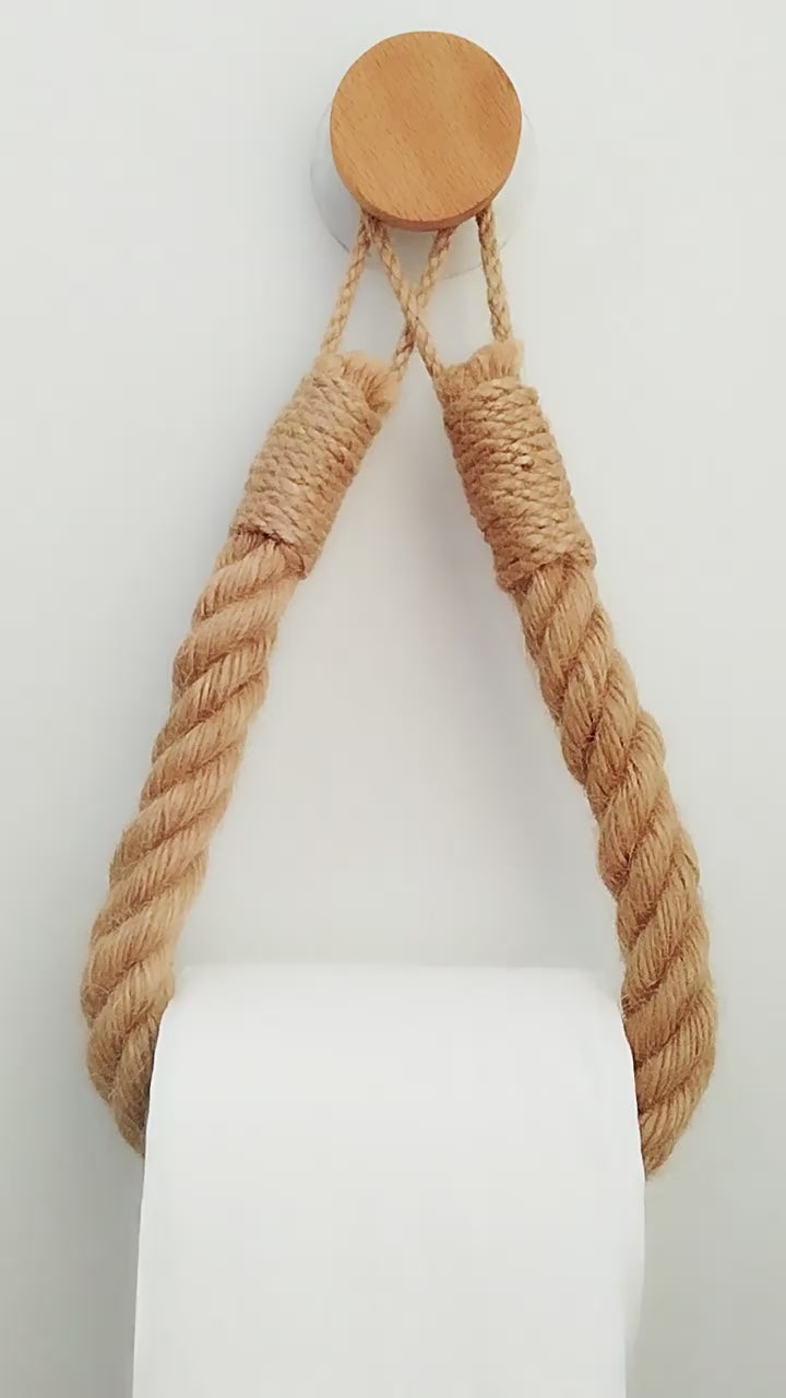 XMT Paper Roll Holder Made of Beech and Hemp Rope, Two Ways of Installation